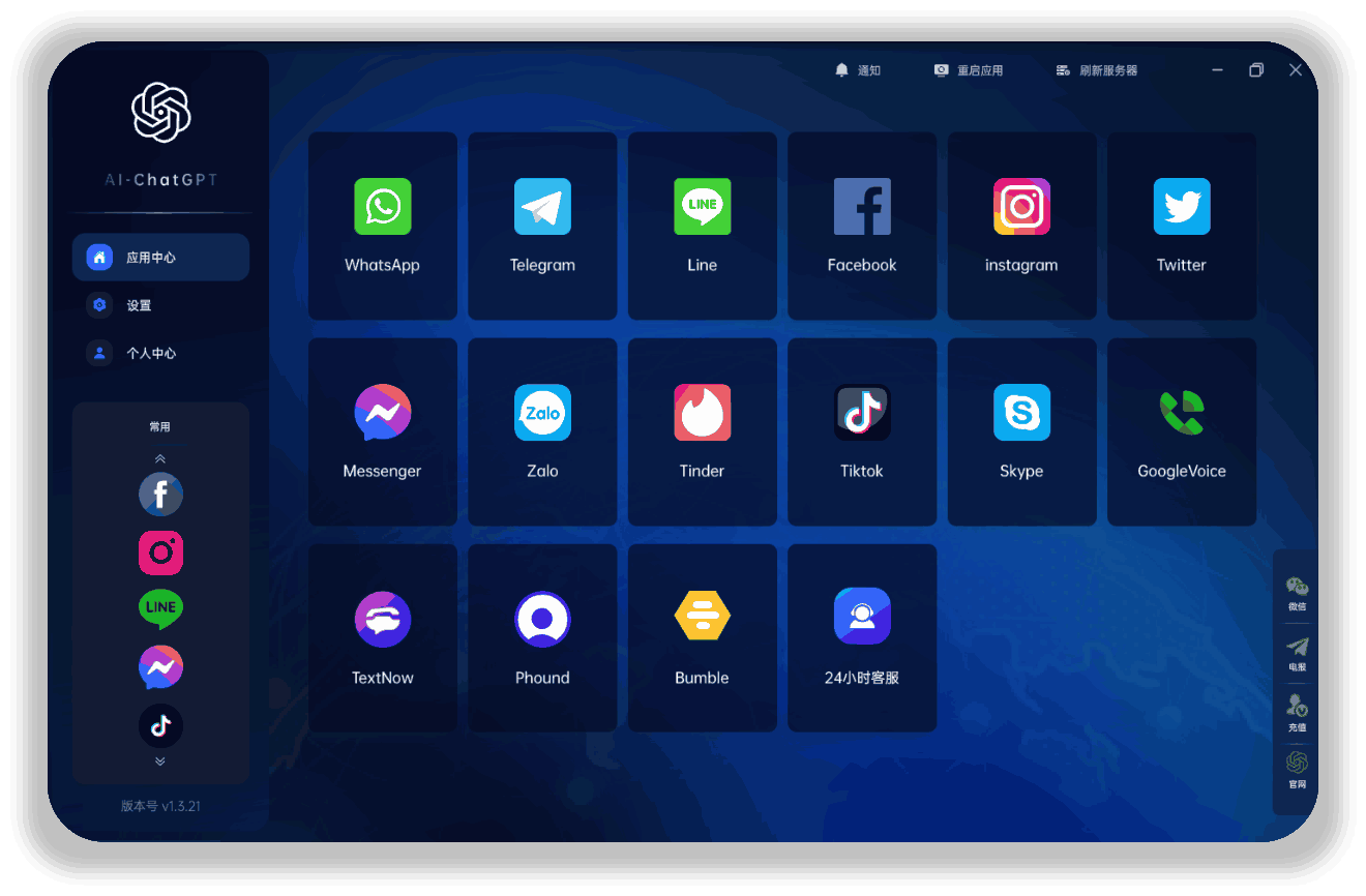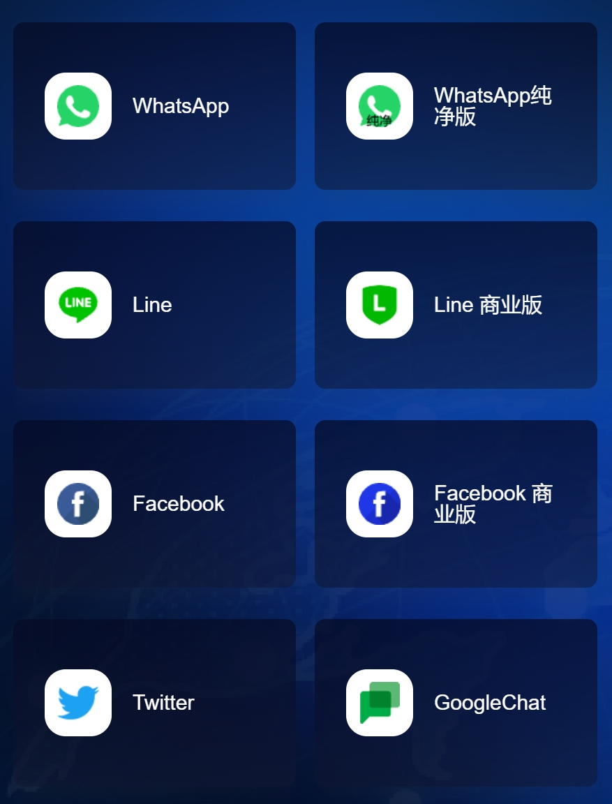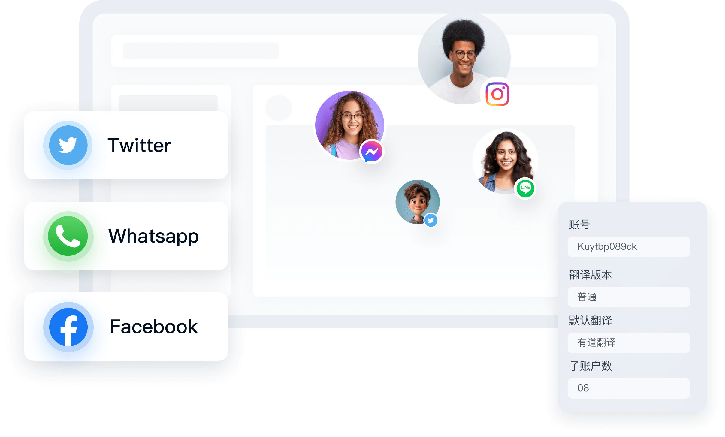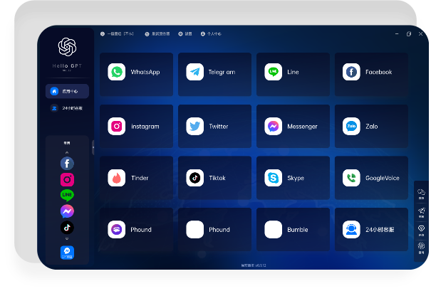 汇聚国际主流社交软件,如WhatsApp、Facebook、Instagram、Line、Tinder等,实现跨平台互联互通,用户可轻松管理多个社交账号,随时随地畅享全球社交新体验,尽情探索多彩社交世界。